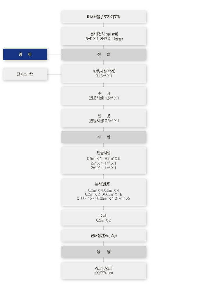 재활용공정도(폐내화물, 도자기조각, 광재, 전자스크랩)
